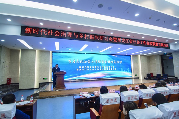2018年11月25日,我校承办了“新时代社会治理与乡村振兴研讨会暨黑龙江省社会工作高校联盟首届论坛”,宋立权副校长、东北石油大学于长青副校长、黑龙江东方学院党委书记王敏、省民政厅及哈尔滨市民政局相关领导、黑龙江省社会工作高校联盟41家成员单位的代表、省内各高校及科研院所的社会工作专业教师、省内社会工作行业组织的代表参加了研讨会。