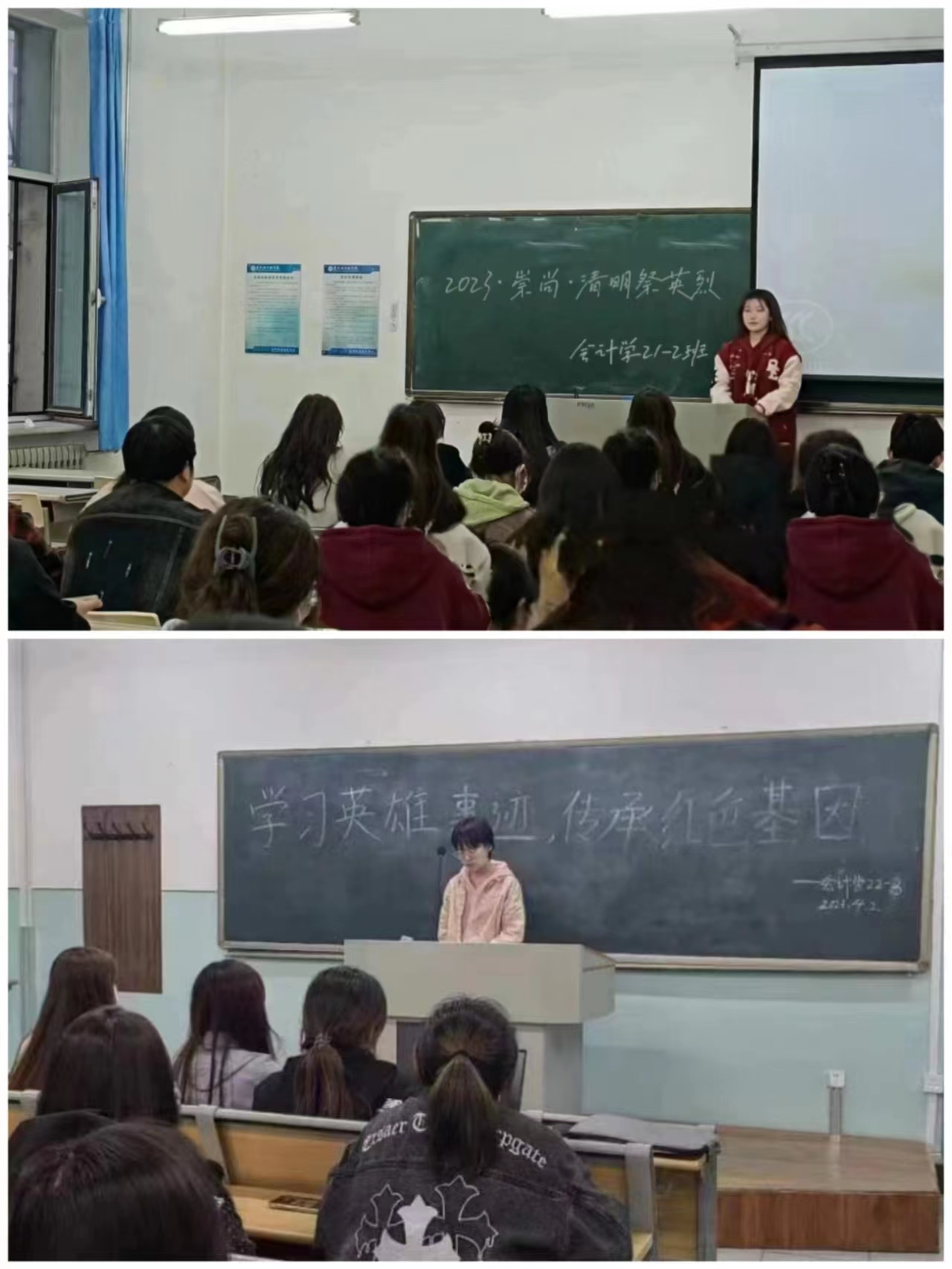 3.主题团日活动 学院各团支部开展“清明祭英烈”主题团日活动,讲述清明节的由来、传统习俗和革命伟人的光辉事迹,激发学生的爱国情怀,增强民族自豪感和使命感。