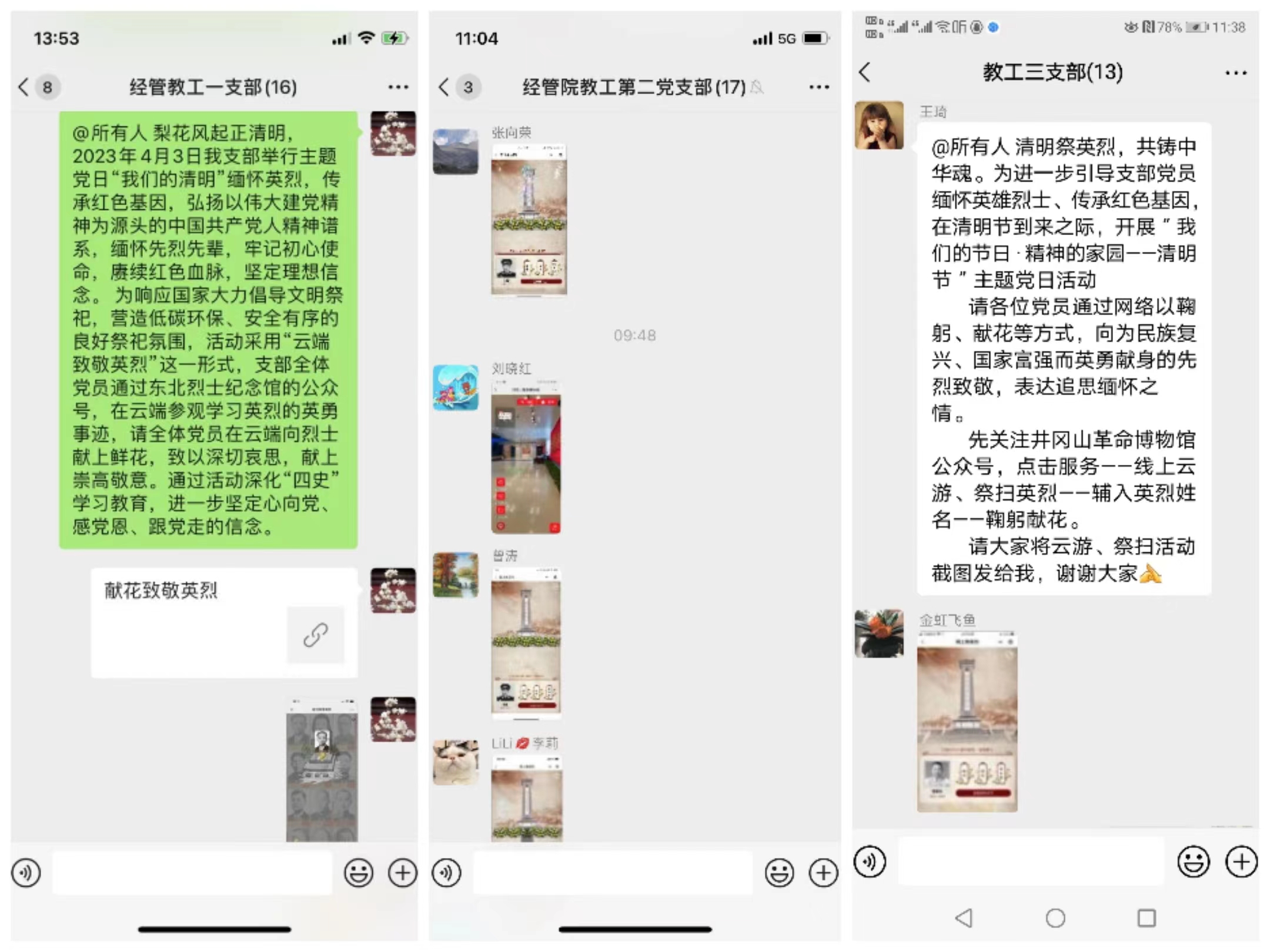 学院教工党支部组织教师党员开展“我们的节日 · 精神的家园——清明节”主题党日活动,通过东北烈士纪念馆、井冈山革命博物馆公众平台,线上云游参观、云端祭扫英烈,学习英烈事迹,向烈士鞠躬献花,致以深切哀思和崇高敬意。
