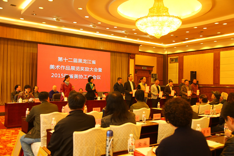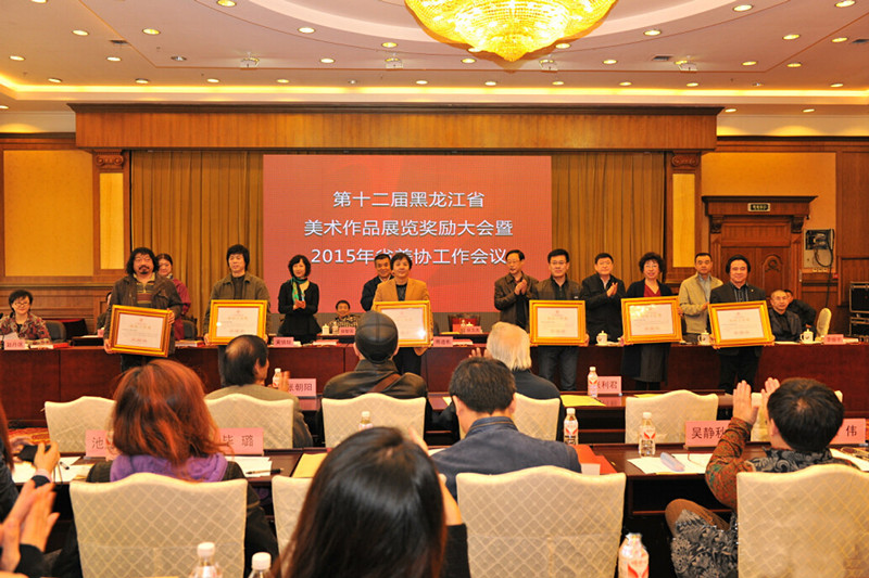 2015年3月30日,第十二届黑龙江省美术作品展览奖励大会暨2015年省美协工作会议在哈召开。第十二届黑龙江省美术作品展览组委会主任、省文联主席傅道彬,第十二届黑龙江省美术作品展览组委会主任、省文化厅副厅长綦军,省委宣传部文艺处处长黄锦秋及省美协主席团成员出席了会议。参加本次会议的还有各市地文联、美协及画院负责人,省美协各艺委会、理事单位及创作基地负责人,省内各高校、企业及相关美术机构负责人及新闻媒体和十二届美展特邀作者。